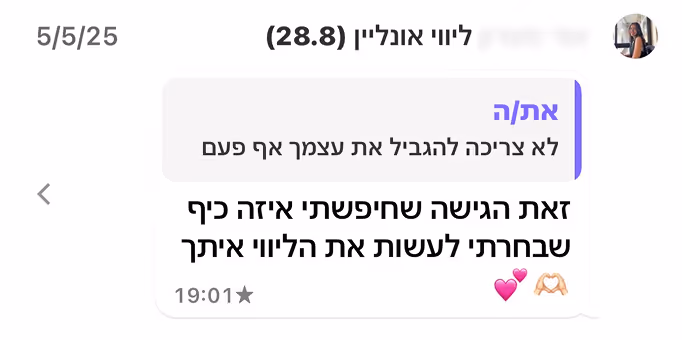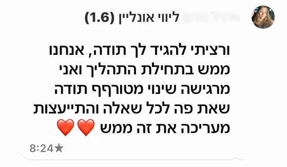 ליווי אישי וצמוד שלוקח אותך יד ביד מהמקום שבו את נמצאת עכשיו לעבר המקום